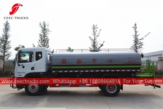 DONGFENG 11.000L waterspuitwagen, DONGFENG 4x2 chassis met stuur links, handgeschakelde zesversnellingsbak, CUMMINS 180 pk dieselmotor, waterpomp van een bekend merk, met optionele sproeiers voor, midden en achter. Alle lakwerk en logo's zijn naar wens.