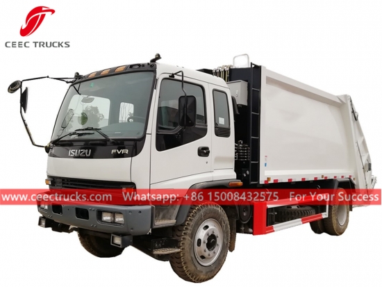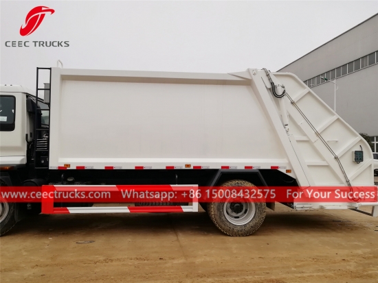 TOP kwaliteit ISUZU 12cbm afvalperswagen, voorzien van een ISUZU merk 4HK dieselmotor, met een motorvermogen tot 240 pk, MLD 6-versnellingsbak voor eenvoudige bediening, sterke kwaliteit stalen carrosserie met roestwerende binnen- en buitenkant, alle logo's zoals vereist.