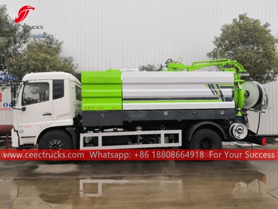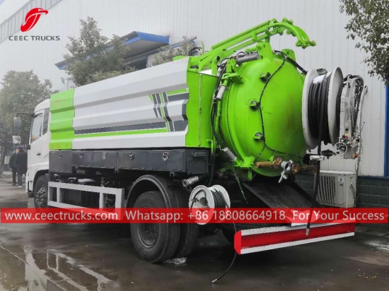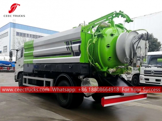 Gecombineerde vacuümspuitwagen Dongfeng (ook wel genoemdGecombineerde straalzuigerwagen, zuig- en reinigingswagen, gecombineerde rioolreiniger, gecombineerde straalzuigerwagen, spuit- en vacuümwagen, vacuüm- en straalvoertuig, gecombineerde straal-/zuigwagen) is een voertuig dat is ontworpen om elke verstopping te verwijderen met behulp van spuitmonden die onder hoge druk door de rioolbuis bewegen, en om rioolafvoerleidingen te reinigen door middel van een krachtige vacuümzuiging om al het water plus modder uit het rioolgat te zuigenDeze vrachtwagen wordt veel gebruikt voor milieubescherming.