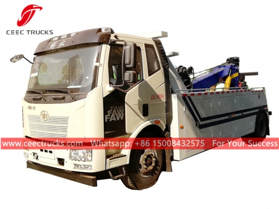 Top 12tons FAW road wrecker truck, 4x2 LHD / RHD chassis, Manual 8-shift gearbox, FAW engine 224HP diesel engine, lifting boom with hydraulic cylinder working, painting and logos depend on requirement.