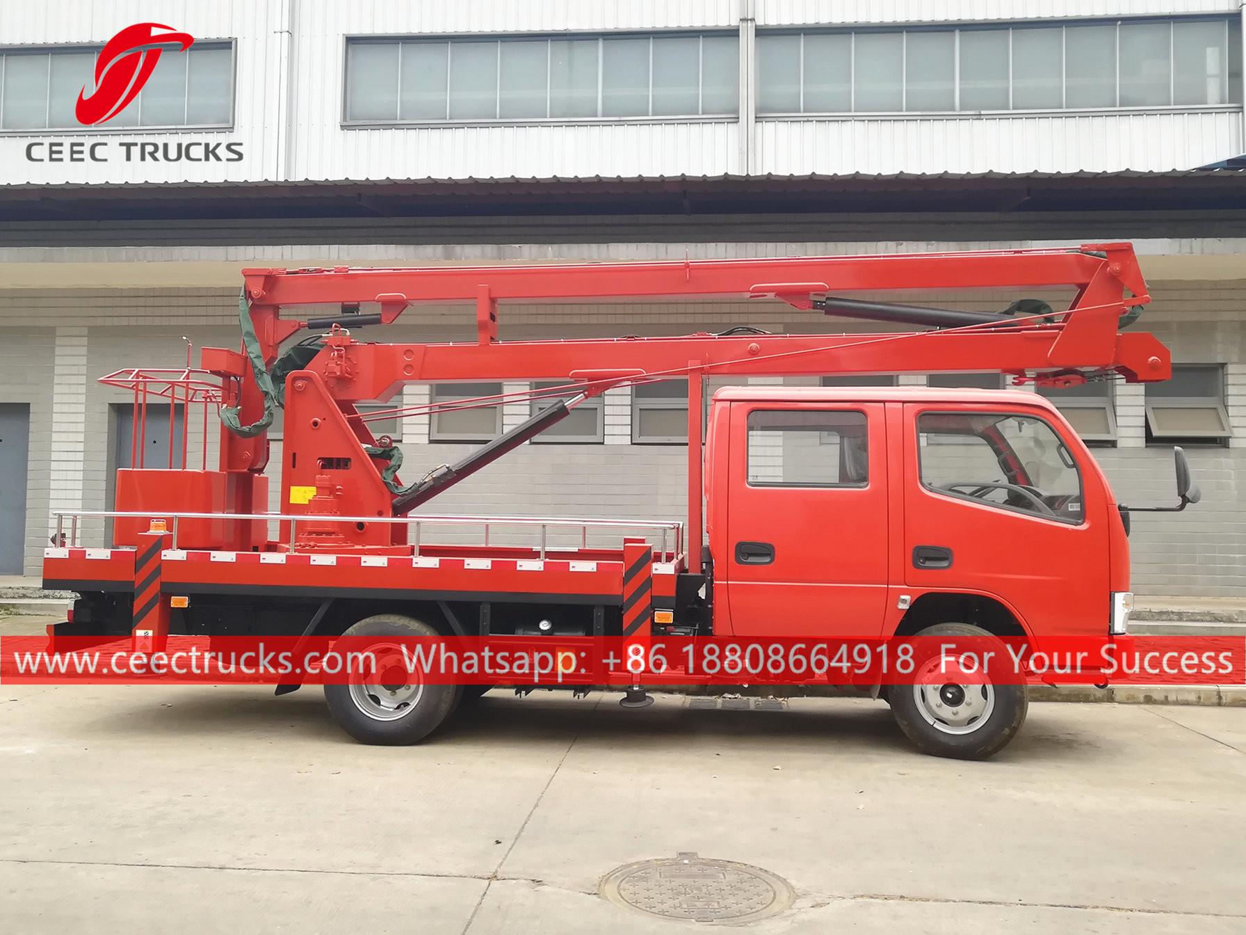 Heftruck van 16 m, chassis van Dongfeng 4x2, handgeschakelde 5-versnellingsbak, 102 pk dieselmotor, lakwerk en logo's naar wens. Bedieningspaneel in de taal van de klant.