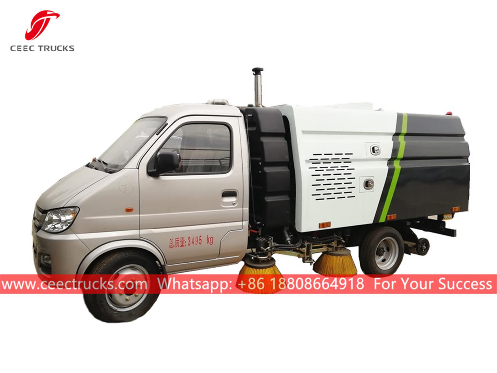 Veegwagen CHANGAN (ook wel genoemdveegwagen, hydraulische straatveegmachine, vacuüm straatveegwagen, vuilniswagen, wegreinigingsvoertuig) is Ontworpen voor het dagelijks vegen van wegen in de wijk, stad, op snelwegen, bouwplaatsen, op bovengrondse wegen, bruggen, pleinen, luchthavens en dokken met een wegdek van asfaltbeton en cementbeton.