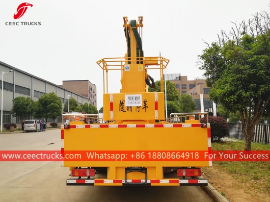 Heftruck van 22 m, chassis van het merk Dongfeng, handgeschakelde 8-versnellingsbak, CUMMINS 190 pk dieselmotor, lakwerk en logo's op aanvraag, bedieningskast in de taal van de klant.