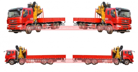 Dongfeng 12-wielers 25-tons knikkraanwagens, CUMMINS dieselmotor 260 pk, EURO 3/4-emissie optioneel, handgeschakelde 9-versnellingsbak standaard, met linksgestuurde en rechtsgestuurde modellen optioneel. Met afstandsbediening naar keuze.