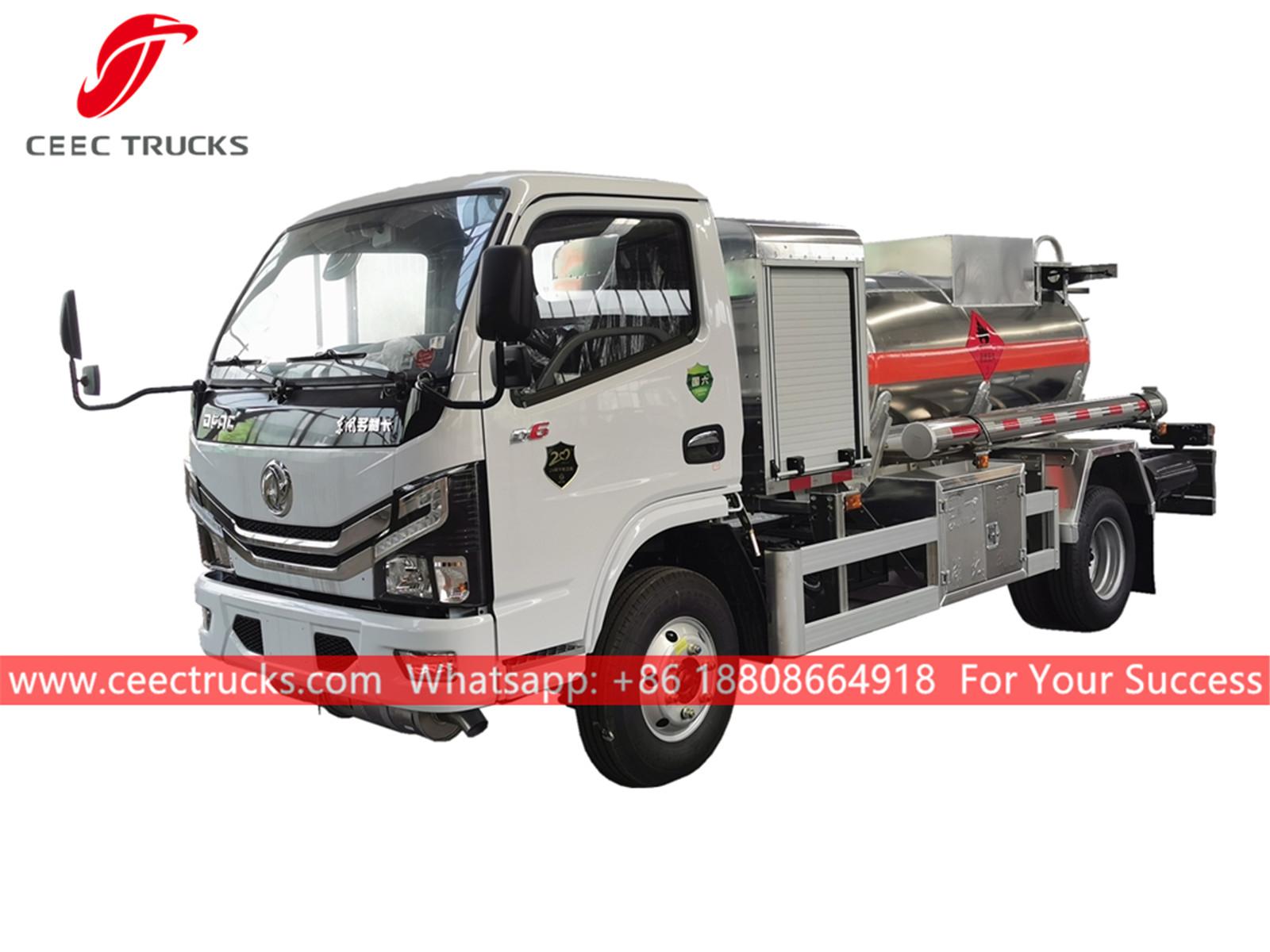 2 cbm mini-olietanker, Dongfeng 4x2 chassis, CHAOCHAI 102 pk dieselmotor, standaard brandstoftanker, bekende merkoliepomp als standaard. Alle lakwerk en logo's zijn naar wens aan te passen.