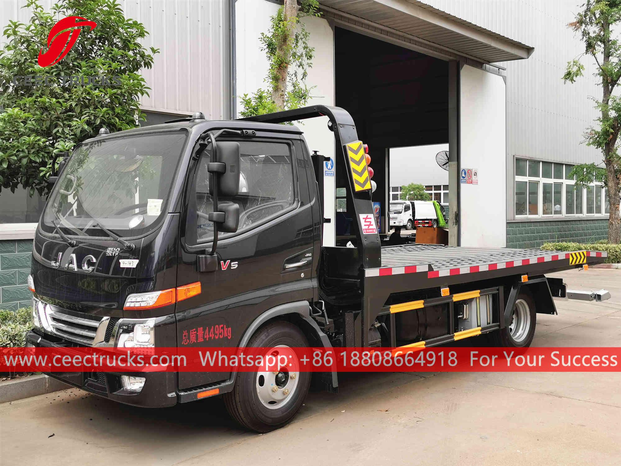 Vlakke laadbak JAC (Ookgenaamd Sleepwagen, JAC Road Recovery Truck, Road Wrecker Truck, sleepwagen te koop, schuifplatform bergingsvoertuig)is een zeer efficiënt voertuig dat vooral wordt gebruikt op snelwegen, luchthavens, zeehavens, autoreparatiewerkplaatsen en verkeerspolitiebureaus. Het kan voertuigen snel weghalen.