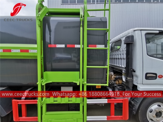 DONGFENG 4cbm Keukenafvalwagen, DONGFENG 4x2 chassis, handgeschakelde 5-versnellingsbak, CHAOCHAI 102 pk dieselmotor, automatische zijhefinrichting, uitgerust met hydraulische achterdeur, lakwerk en logo's op aanvraag.