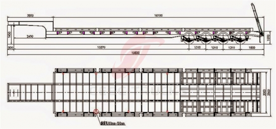 A†Hoofdproces: Het trailerframe is een constructie met een slijtbalk, met behulp van een rechte of zwanenhalsligger. De baanhoogte varieert van 400 mm tot 500 mm, er wordt automatisch onderpoedergelast en het frame, de balken en de liggers worden in hun geheel in een kogelgat gelast.