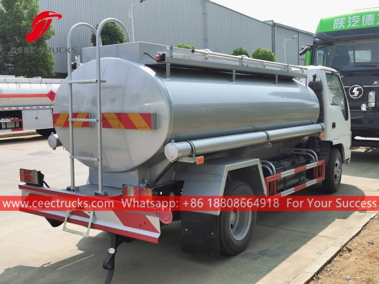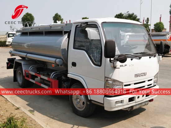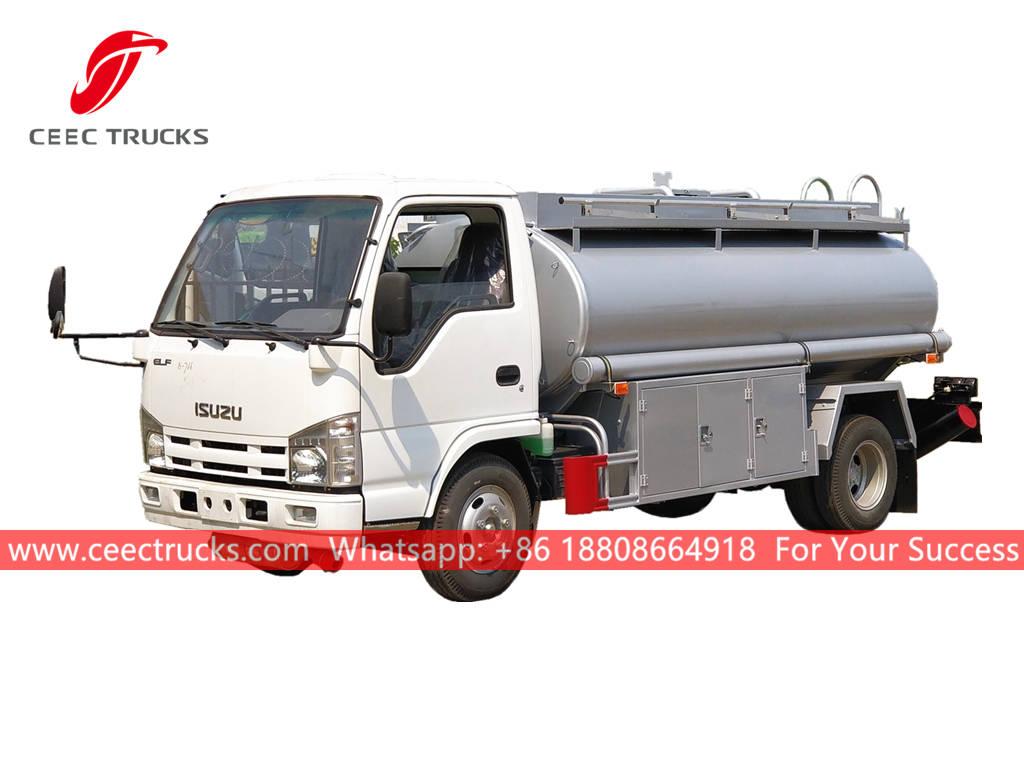 4cbm brandstoftankwagen, ISUZU 4x2 chassis, ISUZU 98 pk dieselmotor, standaard brandstoftankwagen, bekende merkoliepomp als standaard. Alle lakwerk en logo's zijn naar wens aan te passen.