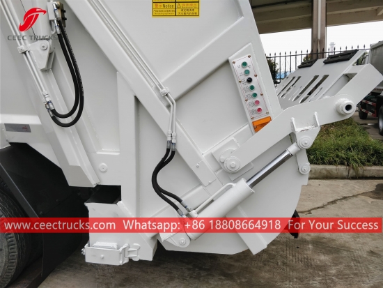 MyanmarKlant koopt een ISUZU 4cbm hydraulische afvalpers met achterlader, ISUZU 98 pk dieselmotor, MSB handgeschakelde 5-versnellingsbak, PLC-regelkast, lakwerk en logo's zijn afhankelijk van de vereisten.
