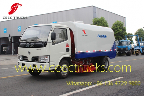 Dongfeng 4CBM veegmachine, milieuvriendelijke 4cbm afvalbak en 1cbm watertank DONGFENG Mechanische veegmachine, roestvrijstalen tanksysteem, 95 pk motor, handgeschakelde 5-versnellingsbak