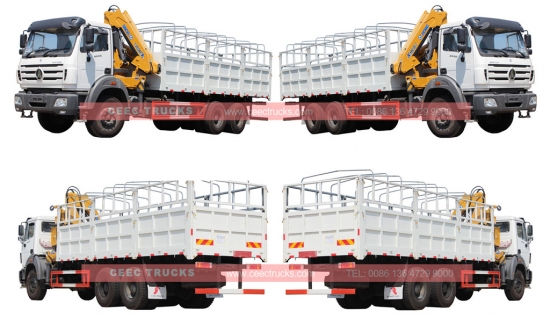 Beiben 5-tons knikarmkraan te koop, super WEICHAI dieselmotor 380 pk, standaard FAST9-versnellingsbak, optioneel verkrijgbaar met linksgestuurde of rechtsgestuurde uitvoering. Uitgerust met een 5-tons knikarmkraan en een speciaal ontworpen laadbak, kan de kraan een maximaal hefgewicht van 5000 kg hebben. Met afstandsbediening naar keuze.