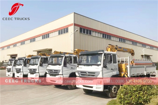 Te koop: HOWO 5T telescopische kraanwagens met giek, SINOTRUK dieselmotor 270 pk, HOWO handgeschakelde versnellingsbak met 10 versnellingen, 10 vooruit en 2 achteruit, met linksgestuurde en rechtsgestuurde modellen als optie. Uitgerust met een 5T telescopische kraan, inclusief afstandsbediening.