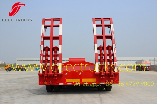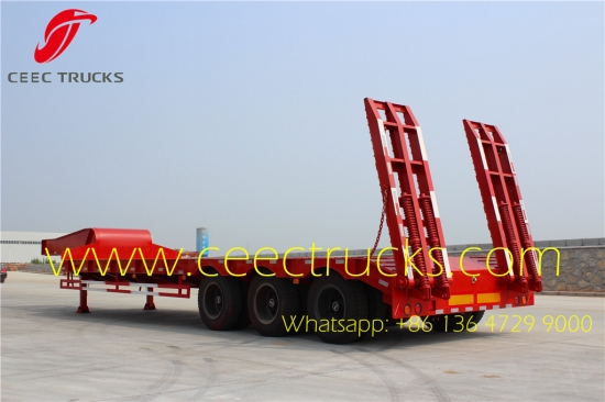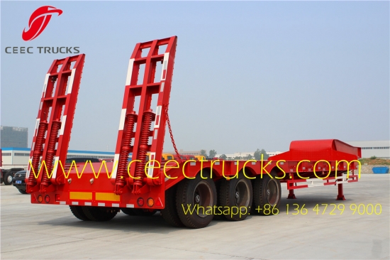 TOP-ontwerp 3-assige dieplader, Q345 I-balk, BPW-as met 12-20T optioneel, JOST-steunpoten en kingpin voor topprestaties. Onze lage, vlakke opleggers met een capaciteit van 50T worden veel geëxporteerd naar Afrikaanse landen.
