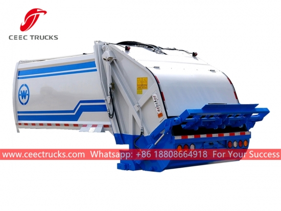Carrosserie van afvalwagencompactor (ook wel genoemdCompressie vuilniswagen bovenbouw, achterlader vuilniswagen opbouw, achterlaadbare bovenbouw voor vuilniswagens) Een type machine voor een vuilniswagen. Een gecomprimeerde vuilniswagen wordt gekenmerkt door het persen van afval door middel van een speciaal persapparaat, naast de transport- en losfuncties van een gewone vuilniswagen..