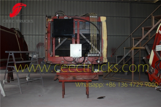 Fabrikant levert 6CBM vuilniswagen-kit, meerwegkleppen van het Italiaanse merk, verdichtingslichaam van hoogwaardig staal, waarvan de dikte aan de zijkanten en de vloer meer dan 5 mm bedraagt, beide aan de binnenkant voorzien van corrosiewerende verf, logo's afhankelijk van de vereisten