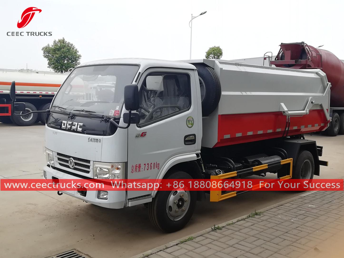 Zelfladende vuilniswagen Dongfeng (ook wel genoemd DFAC zijlader vuilniswagen, Dongfeng DFAC zijlader afvalwagen, Dongfeng afvalinzamelaar, mini hangende bak vuilniswagen, Dongfeng afvalinzamelvoertuig) is Ontworpen voor het dagelijks transport van afval in woonwijken zoals alle soorten steden, grote stations, havens en kades, luchthavens en dichtbevolkte gebieden zoals industriële en mijnbouwbedrijven en militaire eenheden.