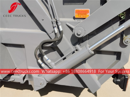 Nieuw ontworpen 6.000 liter achterlaadbak voor afvalverwijdering, die gebruikmaakt van een compacteerbak van hoogwaardig staal, geïmporteerd PLC-model met besturing, bedieningsapparaat voor hydraulische cilinders, bedieningskast in Engelse versie voor eenvoudige bediening.