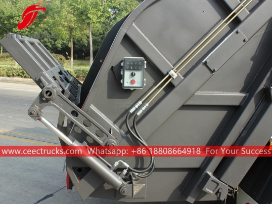 Europese norm 6.000 liter gecomprimeerde bovenbak voor vuilniswagens, die gebruikmaakt van een verdichtingsbak van hoogwaardig staal, geïmporteerd PLC-model met besturing, bedieningsapparaat voor hydraulische cilinders, bedieningskast in Engelse versie voor eenvoudige bediening.