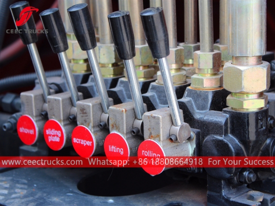 Europese standaard 6.000 liter compressie vuilniswagenset, die gebruikmaakt van een verdichtingscarrosserie van hoogwaardig staal, geïmporteerd besturings-PLC-model, bedieningsapparaat voor hydraulische cilinders, bedieningskast in Engelse versie voor eenvoudige bediening.