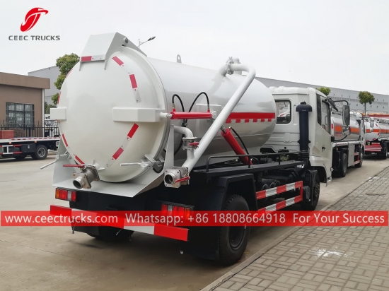 Dongfeng 8cbm vacuümwagen, model met stuur links, 4x2 chassis, FAST 8-versnellingsbak met handgeschakelde versnellingsbak, CUMMINS 190 pk dieselmotor, lakwerk en logo's op aanvraag.