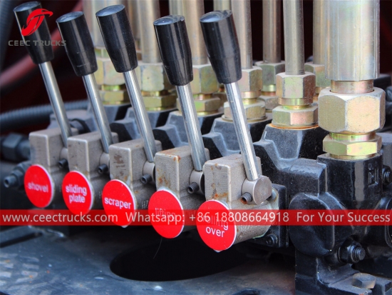 Europese standaard 8.000 liter vuilniswagen met achterlaadfunctie, die gebruikmaakt van een compacteerbak van hoogwaardig staal, geïmporteerd PLC-model met besturing, bedieningsapparaat voor hydraulische cilinders, bedieningskast in Engelse versie voor eenvoudige bediening.