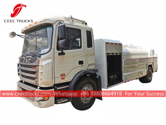 JAC 8.000L hogedrukwaterwagen, JAC 4x2 chassis, handgeschakelde 5-versnellingsbak, YUCHAI 190 pk dieselmotor, waterpomp van een bekend merk, hogedrukslangen en sproeiers. Alle lak en logo's zijn naar wens.