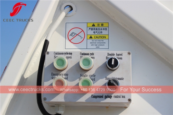 Deze afvalperswagens zijn uitgerust met een automatische hefinrichting voor afvalbakken, een afvalperssysteem, een afvalafvoerplaat, enz. De uitlaatgasafvoer van de afvalperswagen voldoet aan de Europese norm en is veilig en milieuvriendelijk.