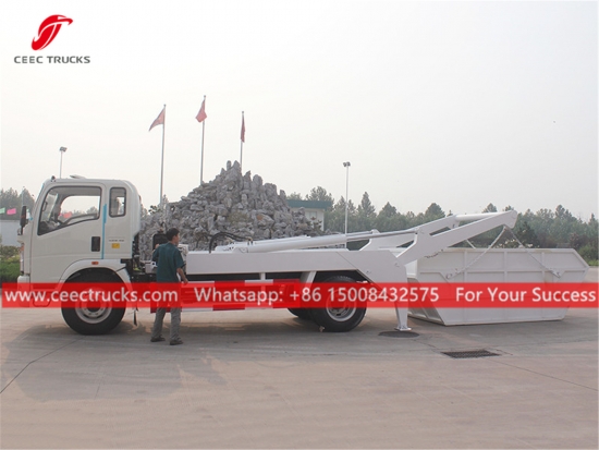 HOWO Afvalcontainer (8000 liter) (ook wel skiploader, skiploader vuilniswagen, skiploader voertuig, swingarm vuilniswagen, telescopische arm skiploader, vuilniswagen, multi-skiploader vrachtwagen genoemd) wordt veel gebruikt in sanitaire voorzieningen, gemeentelijke, industriële en residentiële bedrijven. De vrachtwagen heeft meerdere afvaltanks om vervuiling tijdens het transport te voorkomen. Het aangepaste onderdeel kan van het chassis worden gescheiden, waardoor het gemakkelijk te onderhouden is en de mobiliteit en leesbaarheid van de vrachtwagen behouden blijven.Als u speciale wensen heeft voor een vuilniswagen, neem dan contact met ons op. We kunnen een ontwerp maken en...We kunnen het voor u aanpassen. We kunnen ook stuurbekrachtiging en airconditioning voor u toevoegen.