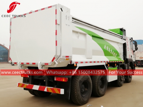 Kipper met 60 ton kiepwagen, IVECO 8x4 LHD chassis, snelle handgeschakelde versnellingsbak met 12 versnellingen, bekende Chinese SFH dieselmotor van 390 pk, kiepbak van hoogwaardig staal, optioneel met hydraulische lift van Hyva of eigen merk. Alle lak en logo's zijn naar wens.