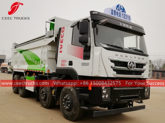 IVECO Genylon 8x4 kiepwagen (ook wel genoemd zware dumptruck, kiepwagen, 60-tons kiepwagens, Hyva fronthef dumptruck, kiepwagen, bouw zand- en rotsdumptruck, kiepwagen, kiepwagen, kiepwagen kiepen, kiepwagen en vrachtwagen, kiepwagen)is ontworpen voor zowel de buitenlandse als binnenlandse markt voor hoogwaardige zware vrachtwagens. Om de concurrentie in de wereldwijde concurrentiestrijd te verslaan, worden de belangrijkste onderdelen van de kiepwagen ontworpen in nauwe samenwerking met topleveranciers wereldwijd.