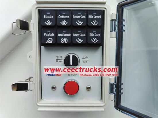 De ISUZU GIGA vuilniswagen is uitgerust met een geavanceerde versnellingsbak met 12 voor- en 1 achterwielaandrijving, gecombineerd met een 6x4 aandrijfvorm voor stabiliteit en efficiëntie, zelfs onder complexe wegomstandigheden. De gebogen tankbak van 20 kubieke meter is gemaakt van speciaal Q235-staal, met een dikte van 4 mm en een volledig gietproces. De compressieverhouding is maar liefst 1:3,4, wat zorgt voor een optimale compressie-efficiëntie van het afval. Het volledig automatische hydraulische besturingssysteem heeft een enkele laad- en loscyclus van slechts 40-45 seconden en is uitgerust met een intelligente PLC-besturing, die eenvoudig en snel te bedienen is. In de handmatige modus kan de machinist de bedieningshendel en elektrische bedieningsknoppen gebruiken om handelingen uit te voeren, zoals het comprimeren en lossen van het afvalcompartiment.