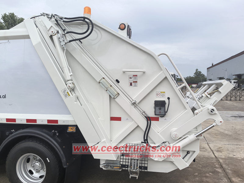 PLC control systemDe Isuzu NPR 10-tons achterlader is een efficiënt voertuig voor stedelijke afvalverwerking dat voornamelijk wordt gebruikt voor het inzamelen, comprimeren en vervoeren van huishoudelijk afval. Het voertuig is uitgerust met een krachtige pers die los afval snel kan comprimeren, het afvalvolume aanzienlijk kan verminderen, de laadcapaciteit kan vergroten en de frequentie en kosten van transport kan verlagen. Isuzu NPR achterlader Het afgedichte ontwerp voorkomt effectief afvallekkage en geuremissie, waardoor secundaire vervuiling wordt vermeden.