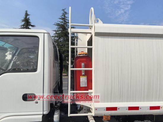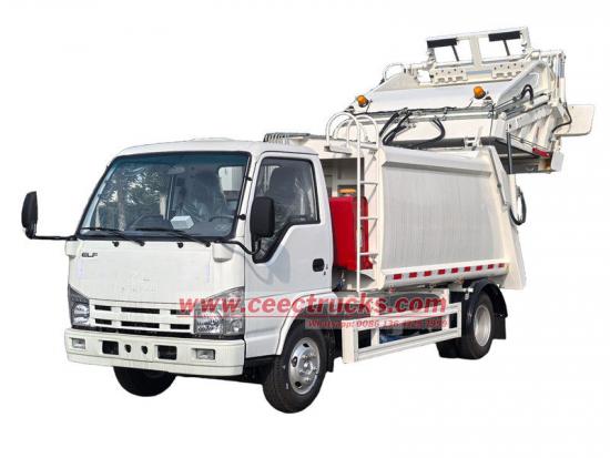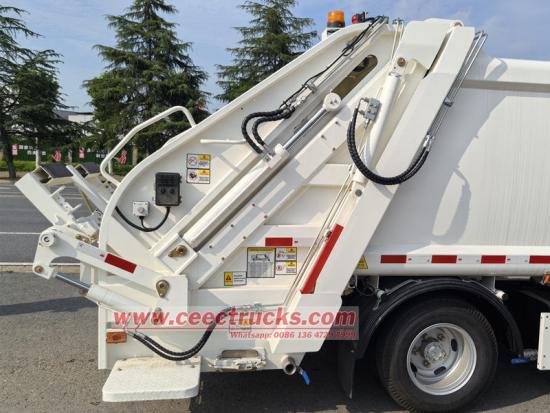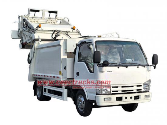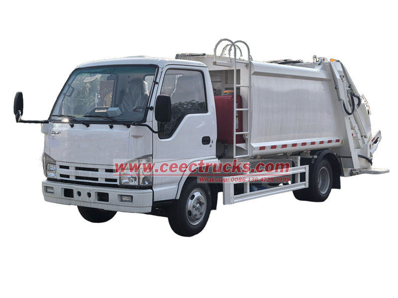 De hydraulische verdichtingswagen van Isuzu heeft een krachtige compressiefunctie die los afval efficiënt kan comprimeren, het laadvermogen vergroot en de transportfrequentie vermindert. Met een wielbasis van 3360 mm met een 4JB1CN-motor van 98 pk, een Euro 4-dieselmotor van 2.771 l, een Isuzu MSB-versnellingsbak met 5 versnellingen, 700R16-banden met in totaal 7 stuks, airconditioning, USB, richtingsassistentie en 3 zitplaatsen. De bovenkant van de carrosserie is een vuilnisbak van 6 m³, de achterkant is een kantelmechanisme voor de bak en er zijn 3 methoden om de vrachtwagen te laden en lossen.