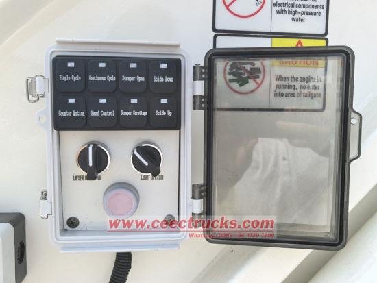 De achterlader vuilniswagen van Isuzu is uitgerust met een geavanceerd besturingssysteem, maakt gebruik van computer- of PLC-besturing, is eenvoudig te bedienen en sterk geautomatiseerd. De chauffeur kan het laden, persen en lossen van afval eenvoudig uitvoeren via het bedieningspaneel in de controlekamer of de bedieningskast aan de achterzijde van het voertuig. Daarnaast beschikt het voertuig over diverse bedrijfsmodi, zoals volautomatisch en semi-automatisch, om aan verschillende operationele vereisten te voldoen. Dit ontwerp vermindert de arbeidsintensiteit van schoonmakers en verbetert de werkefficiëntie.