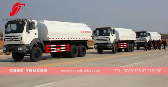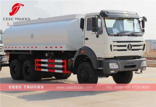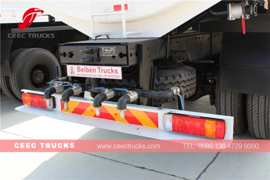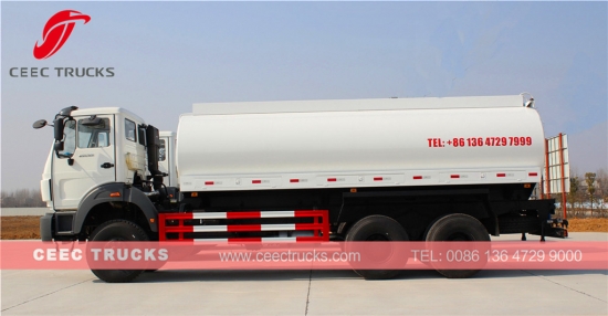 Supersterke Beiben 20.000 liter watertanker, die gebruikmaakt van een North Benz vierwielaandrijvingchassis, WEICHAI 380 pk-motor, snelle 9-versnellingsbak voor eenvoudige bediening, watertankermateriaal van hoogwaardig staal verlengt de levensduur van de watertanker