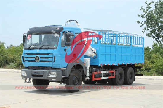 5 Ton Beiben 2638 vrachtwagen, Beiben 6x4 chassis met het stuur aan de rechterkant, FAST 12-versnellingsbak met handgeschakelde versnellingsbak, WEICHAI 380 pk dieselmotor, XCMG 5 ton knikarmkraan, afmetingen van de laadbak optioneel, lakwerk en logo's op aanvraag.