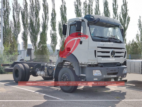 BeibenZware vrachtwagen uit 1822, Beiben 4x2 chassis, snelle handgeschakelde versnellingsbak met 9 versnellingen, beroemde Chinese WEICHAI dieselmotor van 220 pk, GVW 18 ton. Het chassis kan worden gebruikt voor de ombouw van een kiepwagen, vrachtwagen, waterwagen, brandstofwagen, vacuümwagen, vuilniswagen, enz.