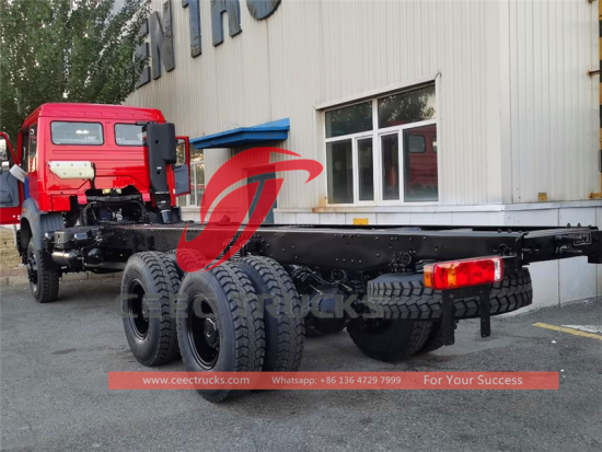 Congo beiben 6*6 aandrijving vrachtwagenchassis, militaire kwaliteitsborging, beroemde merk weichai 420 pk dieselmotor, 12JS200T uiterst betrouwbare transmissie, 4450 + 1450 mm wielbasis, zwaar uitgevoerd versterkt 4 U-bout ophangingssysteem, Mercedes Benz technologie vooras en achteras, Benz technologie NG80B cabine.