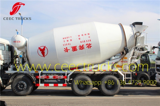 Beiben NG80B 3134 betonmixer, 8*4 linksgestuurd D-ringsysteem, met ZF 9-versnellingsbak, Benz NG80B cabine volledig uitgerust met ECR29 standaard, Benz beroemde technologie as, 12.00R20 band. 14 CBM volume Beiben betonmixers export Afrikaanse landen