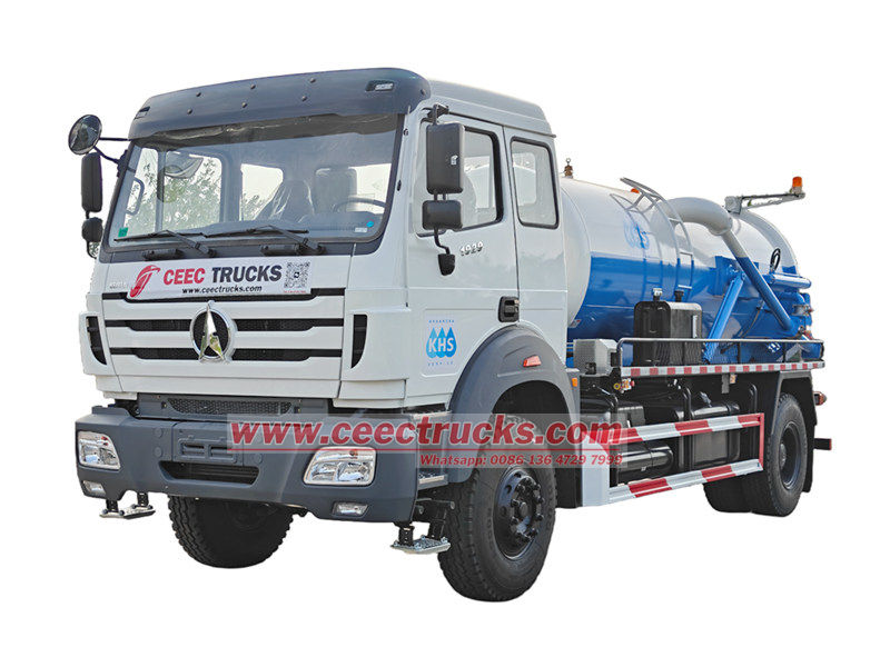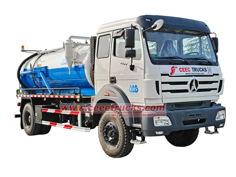 De Beiben 8cbm septische tankwagen is gebaseerd op een Beiben 1929 chassis, wielbasis 4800, Euro 3 dieselmotor met een emissie van 9.726 l, uitgerust met een 290 pk sterke WP10.290E32 dieselmotor en een FAST 9JS150A versnellingsbak, 12.00R20 banden met in totaal 7 stuks, wat hem krachtig en gebruiksvriendelijk maakt. Het voertuig is uitgerust met een vacuümtank van 8 cbm, die geschikt is voor diverse baggerwerkzaamheden, zoals stedelijke rioleringen en industriële pijpleidingen.