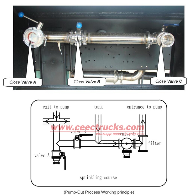 Tank:De tank is gemaakt van hoogwaardig materiaal dat corrosiebestendig en slijtvast is. Een golfbrekende plaat in de tank vermindert de trillingen van het water in de tank en garandeert veiligheid en stabiliteit tijdens transport.