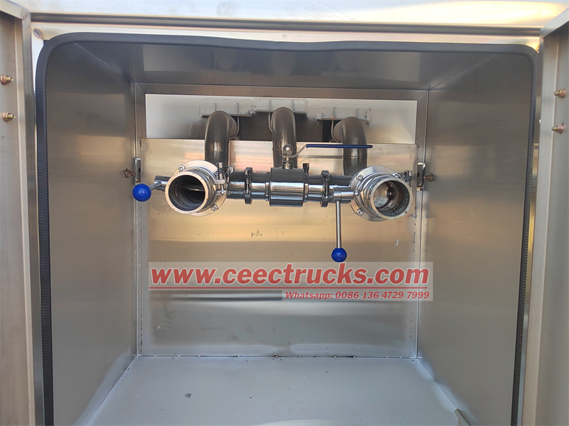 Waterinlaat- en toevoersysteem:Het ISUZU GIGA drinkwatertransportvoertuig is uitgerust met een compleet waterinlaat- en toevoersysteem, inclusief waterinlaat, wateruitlaat, zelfstromende kogelkraan en andere componenten, wat handig is voor het laden en lossen van drinkwater.