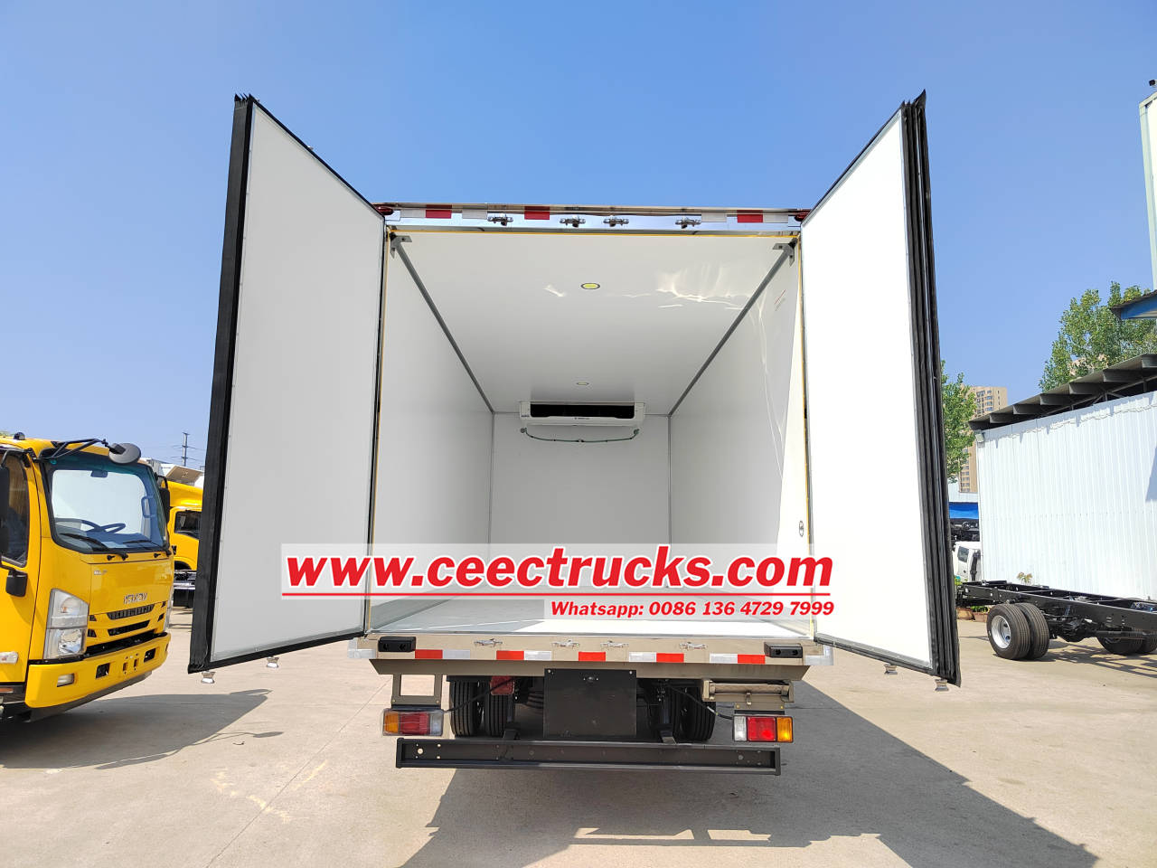 Het koelcompartiment van Isuzu-koelwagens is volgens het internationaal gebruikelijke sandwichproces gemaakt en is in het midden gevuld met isolatiematerialen zoals polyurethaanschuim met een isolatiedikte tot 8 cm. Dit ontwerp garandeert een goede isolatie en een stabiele temperatuur in het compartiment. De binnen- en buitenstoffen van het compartiment zijn grotendeels gemaakt van glasvezel, dat licht niet absorbeert, goed warmte-isolerend is, een hoge hardheid heeft en oxidatiebestendig is. De compartimentstructuur is stevig, met een gegalvaniseerd buisframe en milieuvriendelijke, waterdichte houten platen die in één stap zijn gevormd. Het buitenframe is gemaakt van roestvrij staal en verdikte aluminium profielen, wat zorgt voor een goede afdichting en sterkte.