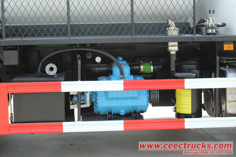 Tijdens de operatie stopt de vrachtwagen bij een verstopping in een septictank, riool of leiding. De vacuümpomp is via een zuigslang verbonden met de afvalcontainer. Na activering creëert de pomp snel een hoog vacuüm in de tank, waarbij het drukverschil wordt benut om vloeibaar of halfvast afval, zoals fecaliën, rioolwater en slib, krachtig in de tank te zuigen.