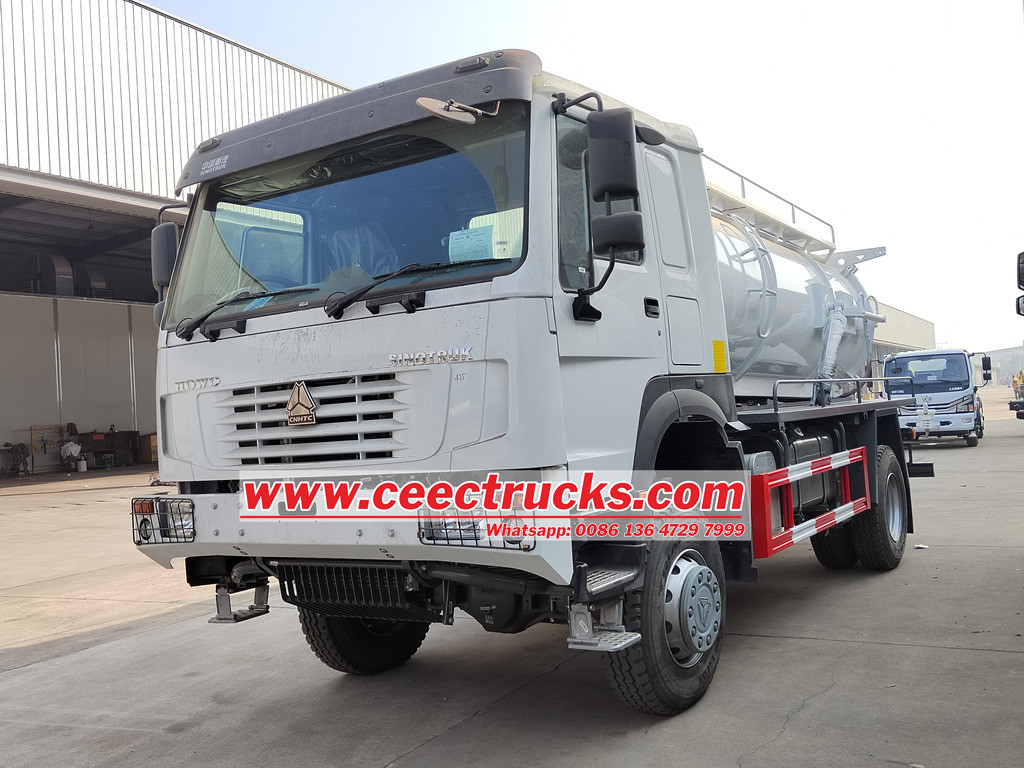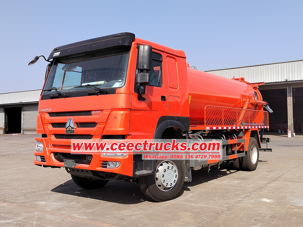 Of de HOWO septic tankwagen nu een vast toilet of een mobiel toilet is, er is altijd sprake van een septictank.Sinotruk HOWO septische zuigwagen kunnen allemaal van pas komen. De riooltanklichaam De HOWO rioolwatertankwagen is gemaakt van hoogwaardig koolstofstaal. De vacuümzuigtankwagen is uitgerust met een watercirculerende rioolwaterzuigpomp of een vacuüm rioolwaterzuigpomp en is voorzien van een gegalvaniseerde kogelkraan om een afgesloten druktank te vormen. De sterke zuigkracht zorgt ervoor dat allerlei soorten stenen, modder, olie, afval, enz. zich nergens kunnen verstoppen.Uitgerust met een MORO vacuümpomp geïmporteerd uit Italië, heeft de pomp efficiënte en stabiele zuigprestaties en kan voldoen aan de behoeften van langdurig continu werk.Uitgerust met vacuümtank, rioolzuigleiding, besturingssysteem en andere componenten, vormt dit samen een compleet vacuüm rioolzuigsysteem.