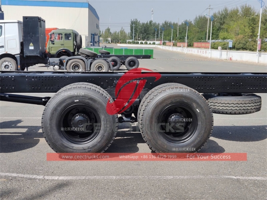 BeibenV3 2538 zware vrachtwagen, Beiben 6x4 chassis met 10 wielen, snelle handgeschakelde versnellingsbak met 12 versnellingen, beroemde Chinese WEICHAI dieselmotor van 380 pk, GVW 25 ton. Het chassis kan worden gebruikt voor de ombouw van een kiepwagen, vrachtwagen, waterwagen, brandstofwagen, vacuümwagen, vuilniswagen, kraanwagen, enz.
