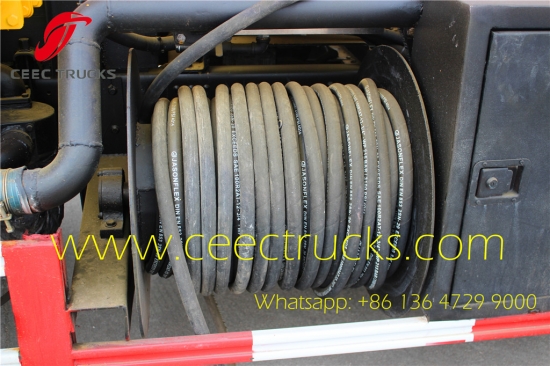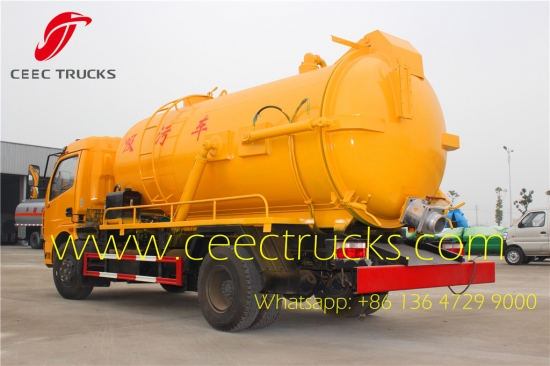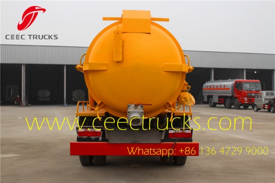 3. Uitrusting: ronde tank met materiaal van koolstofstaal, krachtige vacuümpomp, kiepbak, achterdeksel kan hydraulisch worden geopend, achterdeksel voorzien van zelfdoorstromend gat en speciale klep, aanzuighoogte kan 5-8 meter zijn, uitgerust met speciale rioolzuigbuis;