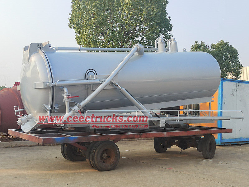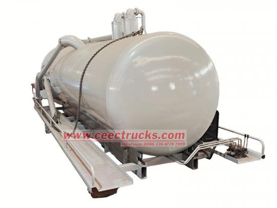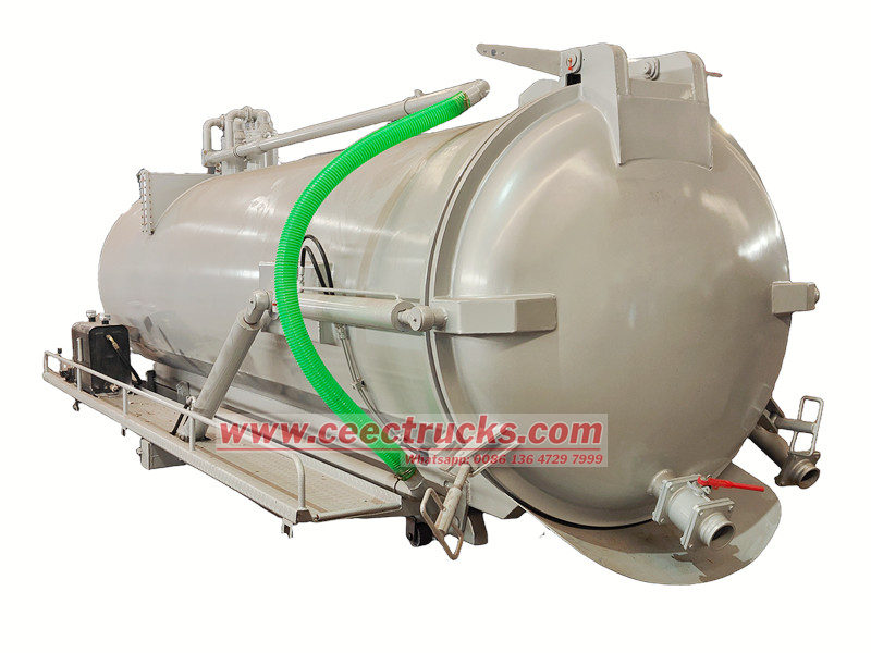 Optional MORO or Jurop pumpDe op maat gemaakte 3000 gallons rioolwatertank is gemaakt van hoogwaardig koolstofstaal en biedt uitstekende druk- en corrosiebestendigheid, wat een veilige en betrouwbare werking op lange termijn garandeert. In de tank is een overloopbeveiliging geïnstalleerd om terugstroming van rioolwater en schade aan de vacuümpomp effectief te voorkomen.