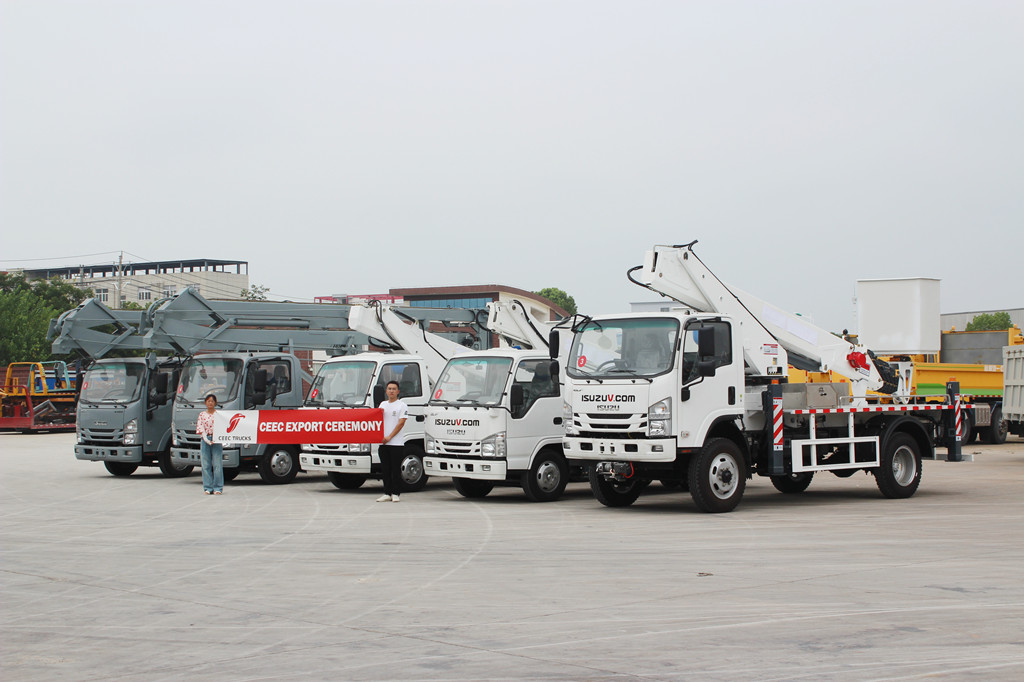 DeISUZU hoogwerkersDe geëxporteerde exemplaren waren deze keer afgestemd op de specifieke behoeften en operationele omgeving van klanten in Djibouti. Als eilandstaat in Oost-Afrika stellen de unieke geografische omgeving en klimatologische omstandigheden van Djibouti hogere eisen aan hoogwerkermaterieel. Het technische team van CEEC voerde diepgaande gesprekken met klanten om hun toepassingsbehoeften in verschillende sectoren, zoals energieonderhoud, stedelijke bouw en noodhulp, te begrijpen. Uiteindelijk werd besloten om ISUZU NPR- en NKR-chassis als basis te gebruiken, gecombineerd met een 19 meter lange knikgiek en een 20 meter lange telescopische giek van verschillende modellen om te voldoen aan de eisen van verschillende hoogtes en bedrijfsbereiken. Bijzonder is dat alle manden een geïsoleerd armontwerp hebben, wat de veiligheid en efficiëntie tijdens de werkzaamheden effectief verbetert en met name geschikt is voor het onderhoud en de reparatie van elektriciteitsvoorzieningen.